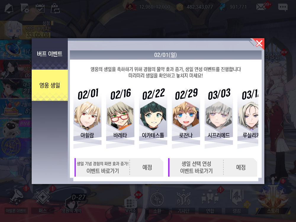이번 생일자는 넷. 작년 글 작성하면서 내년에는 둘만하면 된다! 했는데, 아닙니다. 이번에도 넷입니다. 물 아힐람이 2월 1일 정오를 기점으로 열렸고, 어둠 이카테스톨이 등장했습니다. 안 올 줄 알았던 타속성 마도대전 캐릭터가 열린게 크죠. 물 아힐람 열어 놓고 보니 불 미리안드와 관련이 있고, 물 아힐람에서 의미심장한 말을 남긴 물 베로니카 생각하면 조만간 베로니카도 나올 모양입니다. 여기는 물 프리스트일까요. 봐야 알겠지요.