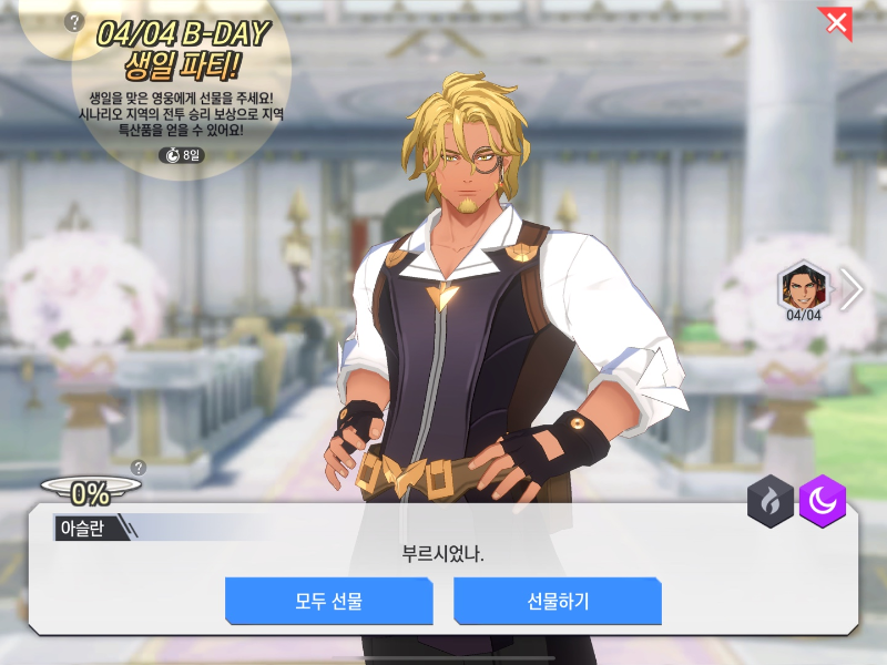 ... 아니. 그. 아니. 성격에 따라 매우 다릅니다. 불슬란은 작년에 이미 선물을 드려서 포토카드를 받았고요. 올해의 어둠 아슬란은 저 담담한 반응이 매우 무섭습니다. 아, 이 분은 각성 안하기도 했고요...